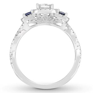 Diamond/Sapphire Ring 1 ct tw Princess-cut 14K White Gold